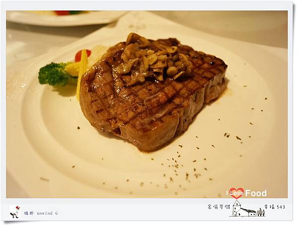 主廚特製的磨菇黑胡椒醬淡淡的提昇了牛排的香氣,這嫩煎牛排的肉質真的很嫩,牛肉在口中跳舞著好美妙的口感啊!