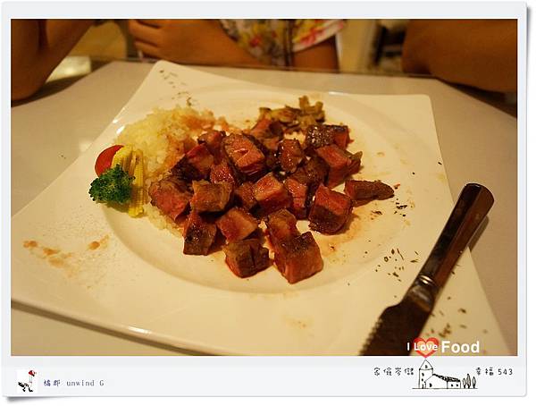 這嫩煎牛排上桌時我們一家人都睜大了雙眼,哇!好大好紮實喔!這老板是佛心來著的大方