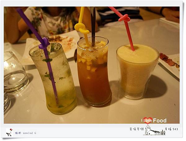 此時飲品上桌了,分別是魔嘻多.水果茶.夕陽