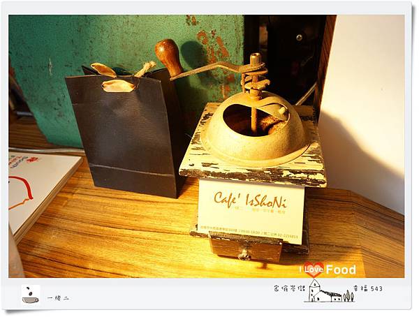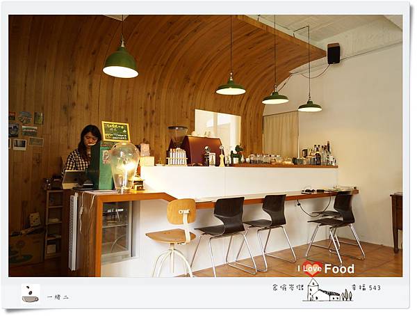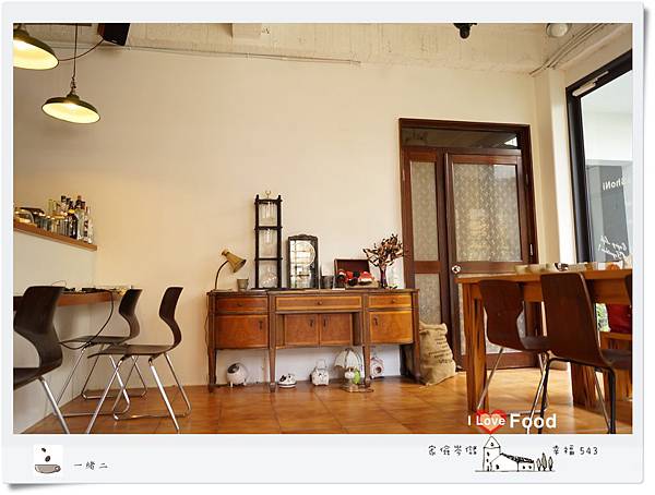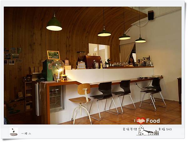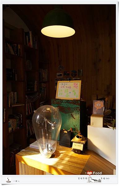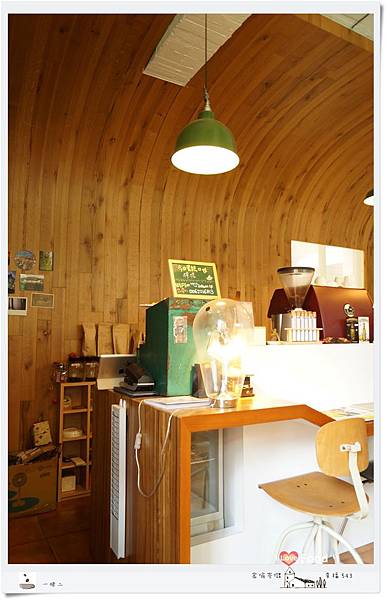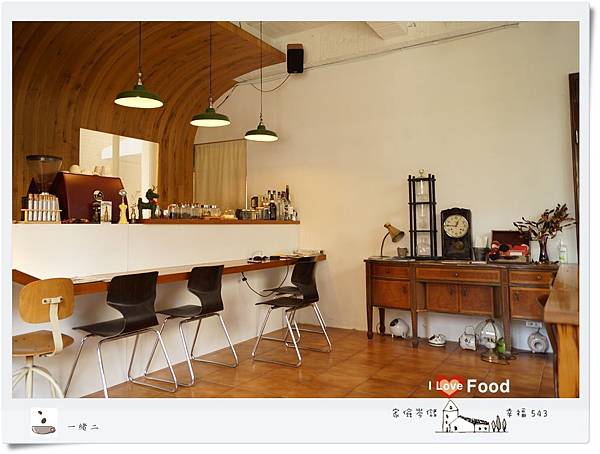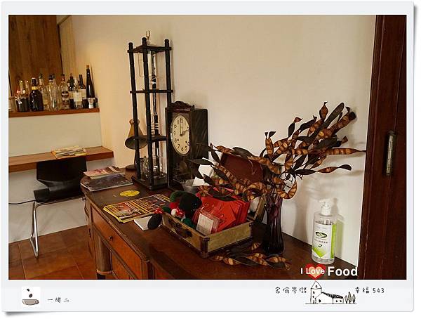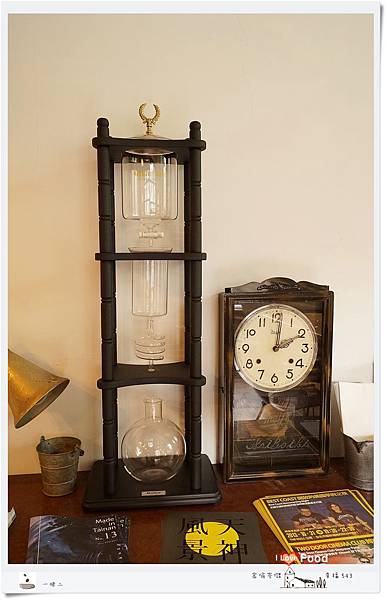 吧台前的老木桌上也放上了許多寶貝,枱燈.老鐘.冰滴咖啡和各式DM