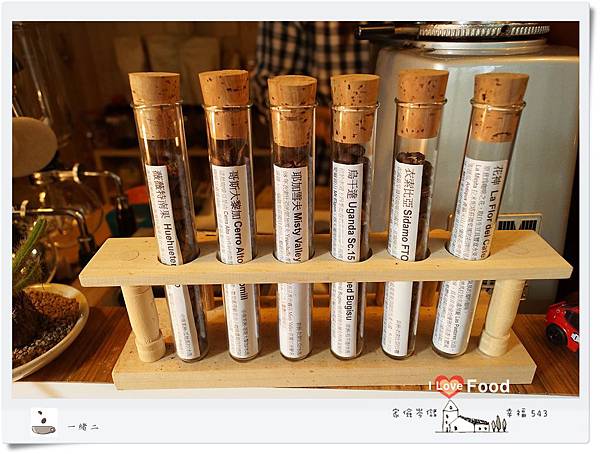 試管裝著各式的咖啡豆,我喜歡這樣的畫面,很快的就能將咖啡豆的品名納入腦海裡