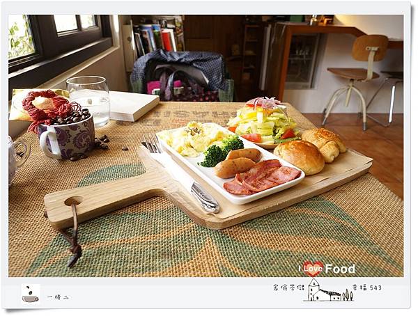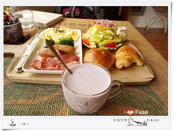 再來看看這盤美麗的早午餐,用著木柄盤裝呈著,色彩搭配的相當迷人