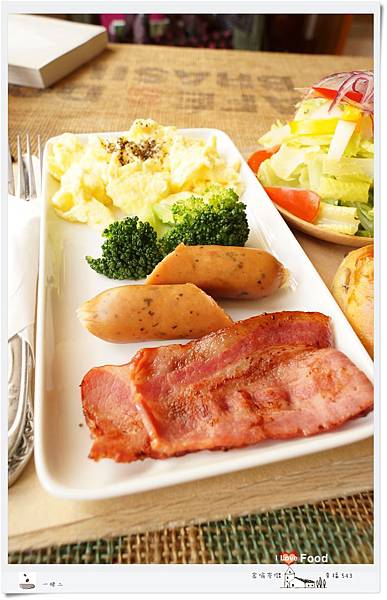 最後要看的是主菜的部份,有香煎培根.德國香腸.青花菜和炒蛋,口感都在標準值上