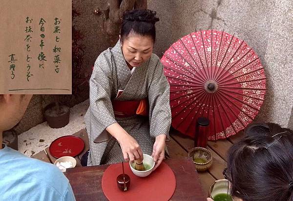俐落的刷手很快的就刷出一碗可口的抹茶,很幸福的享受