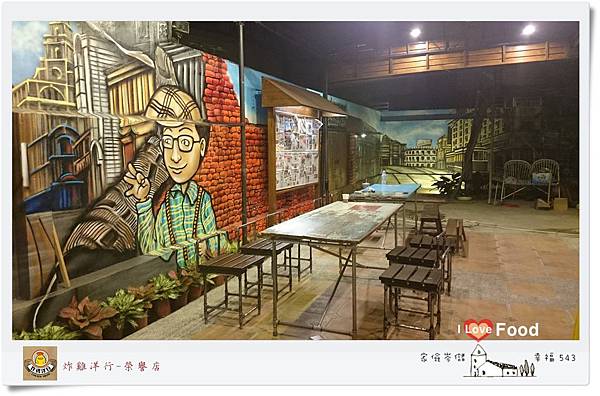 而從門口一路延伸下來的彩繪牆,復古的街道塗鴉,將炸雞洋行也融入其中