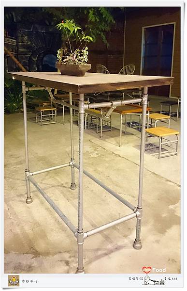 椅子有點巧思是用木板和水管拼湊成的,結構很紮實坐起來很穩,不錯