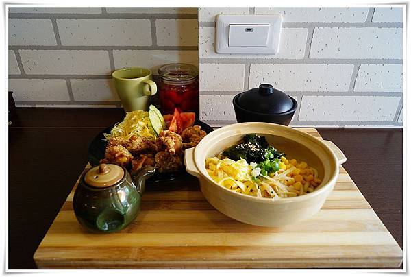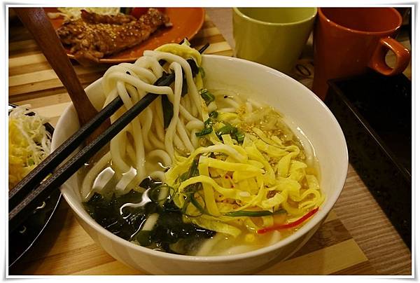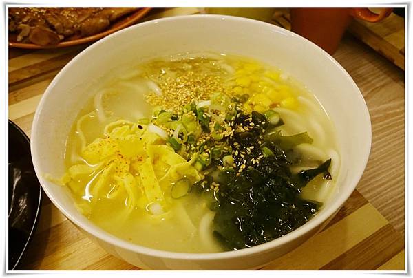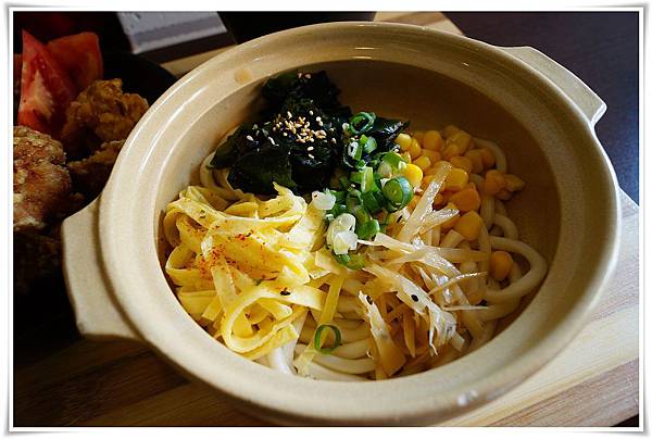 蛋皮絲.牛蒡.海帶芽和玉米粒覆以烏龍麵上,這樣的畫面就足以打動我了