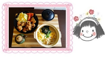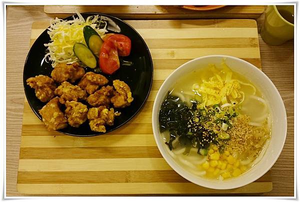 接著是唐揚炸雞定食,搭配的是湯烏龍麵