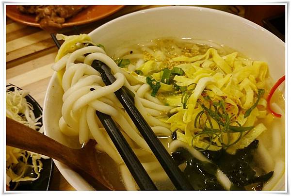 而那豚骨湯頭香醇,烏龍麵順口滑溜,和乾拌的口感完全不同